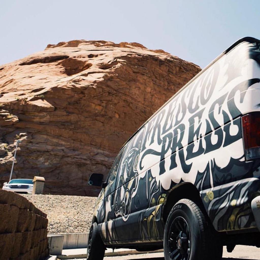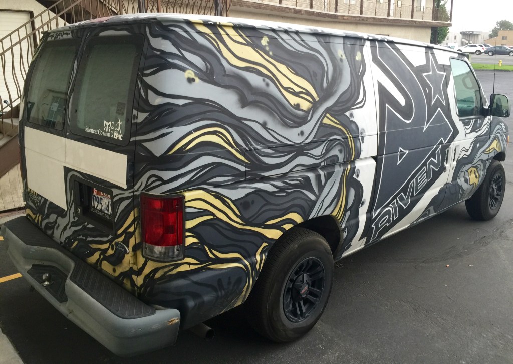Following the success of the Fresco Press and Riven shop murals, I had the opportunity to transform their shared company van into a mobile showcase of their brands. What started as a blank, white vehicle became a billboard on wheels, with one side dedicated to Riven and the other to Fresco, seamlessly tying in their logos and visual identities. Staying true to the monochromatic aesthetic of their interior murals, the design was entirely executed with spray paint, giving it a bold, handcrafted feel that stood out from traditional vinyl wraps. The final result was more than just a van—it became a rolling piece of art that the team loved, regularly featuring it in media content and social campaigns to amplify their presence.