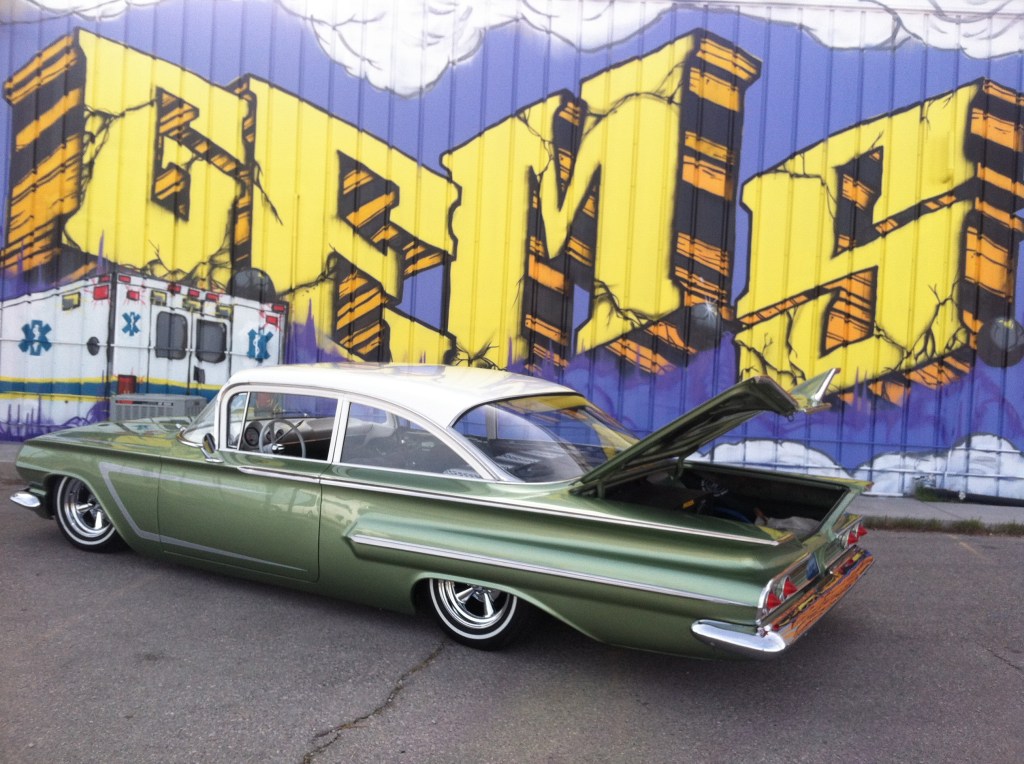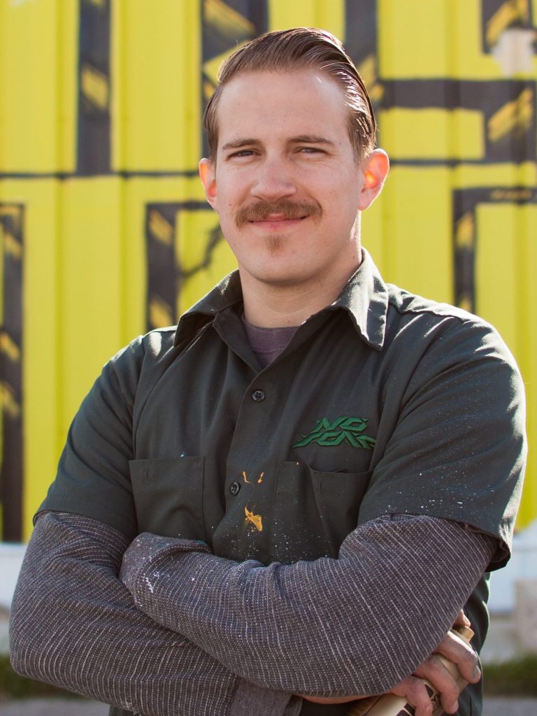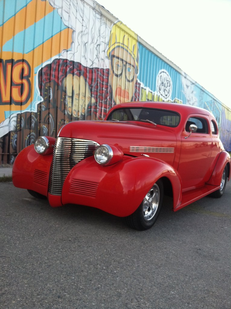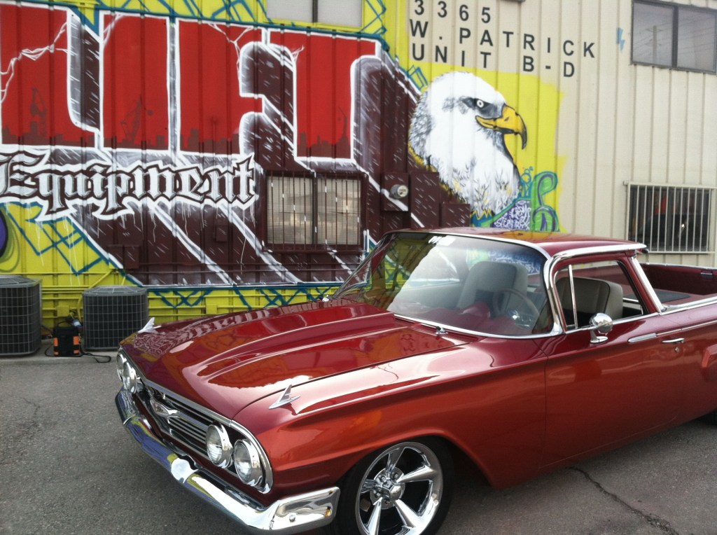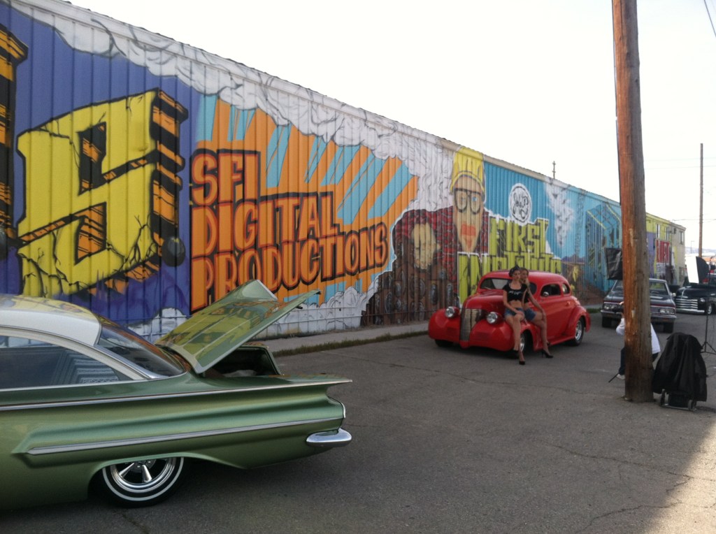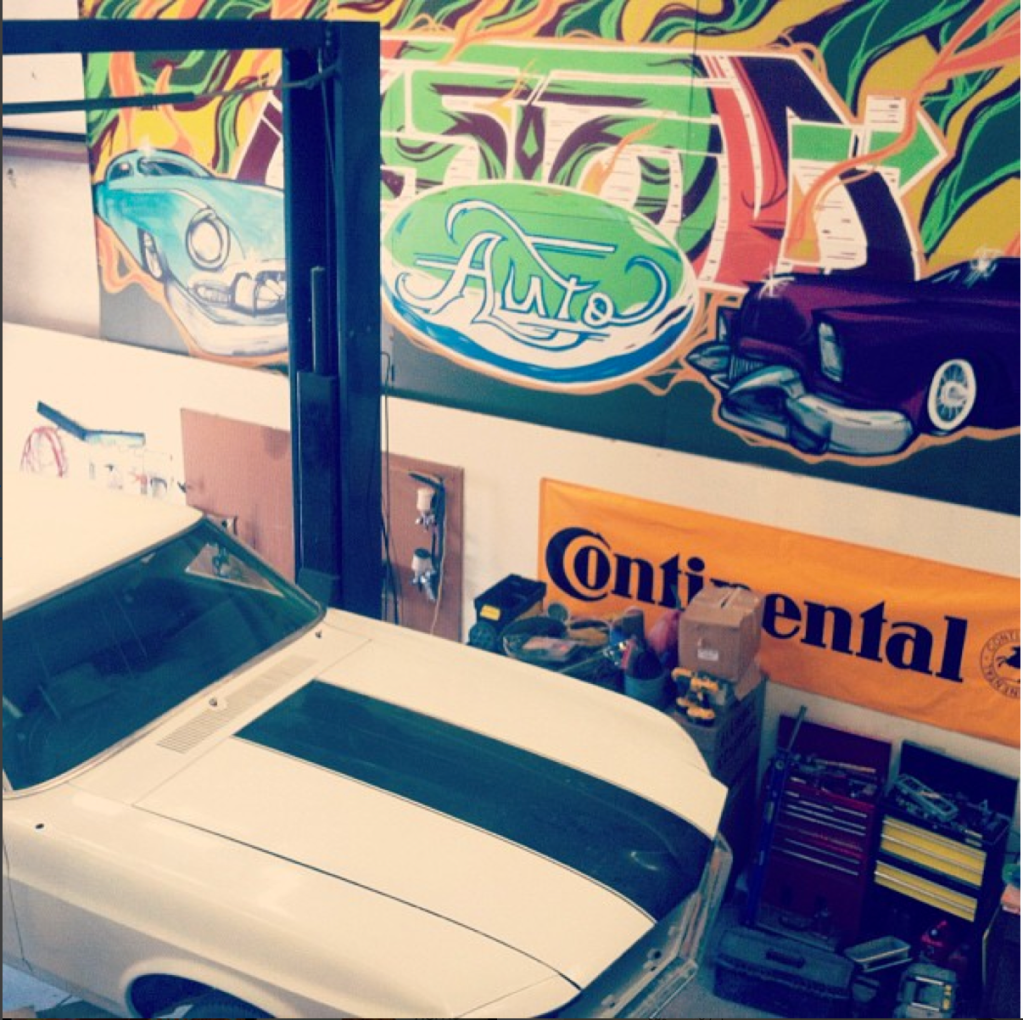 Custom Auto, a Las Vegas-based auto shop, commissioned me to create a portable mural that could move with them if they ever relocated. The piece spanned six 4’x8’ panels of primed MDF, allowing for flexibility while maintaining a large, cohesive design. I designed a custom hand-lettered logo and brought it to life with spray paint, incorporating vintage cars in a bold, cartoonish Dick Tracy-style aesthetic.