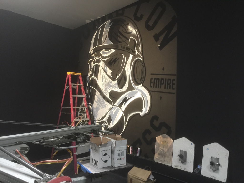This ambitious mural for Safety First Institute transformed a massive industrial wall into a vibrant celebration of certifications and training. Spanning nearly 1,000 feet in length and towering high enough to require a scissor lift and boom truck, the project was both a creative and logistical challenge. Each section of the mural represented a different industry supported by the company’s investors—ranging from paramedics to construction workers—and seamlessly blended into a cohesive, visually striking composition. Completed over the course of a month with occasional volunteer assistance, this mural not only highlighted the company’s mission but also redefined the space with bold artistry and purpose.