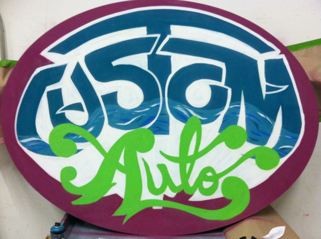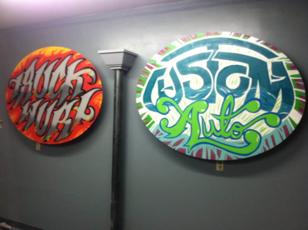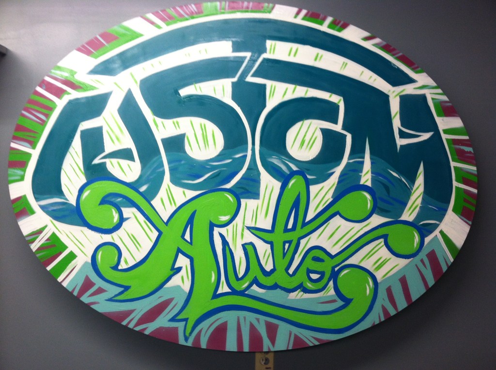 In addition to the mural, I was also tasked with painting two fabricated post topper signs for their reception area—one for Custom Auto and another for TruckWurx, a partner in their shop. These hand-painted signs added a polished, branded touch to the space, reinforcing the shop’s bold identity from the moment customers walked in.