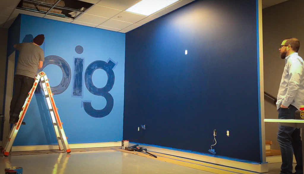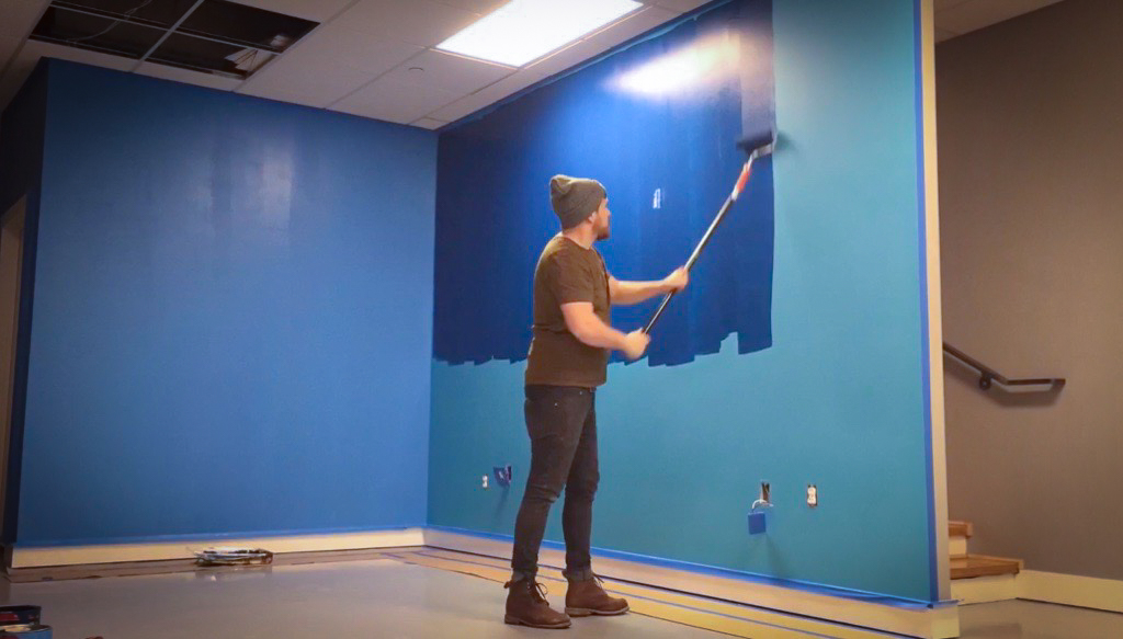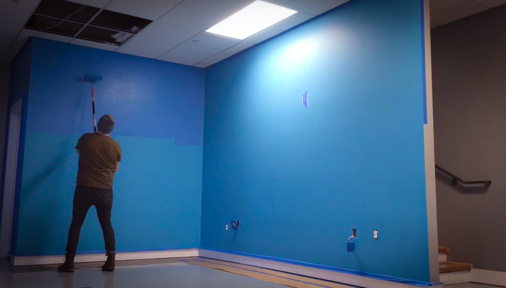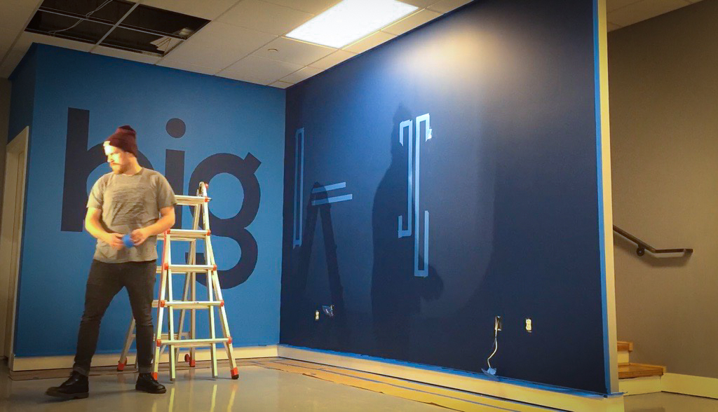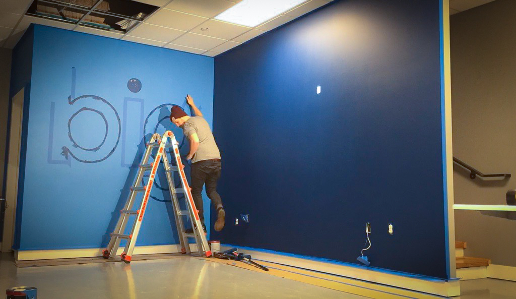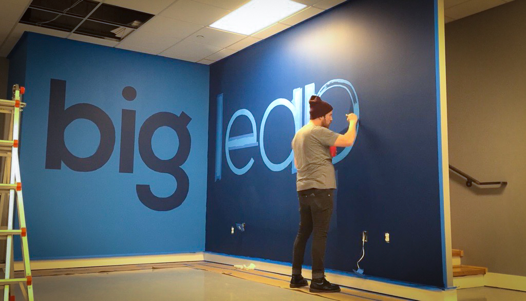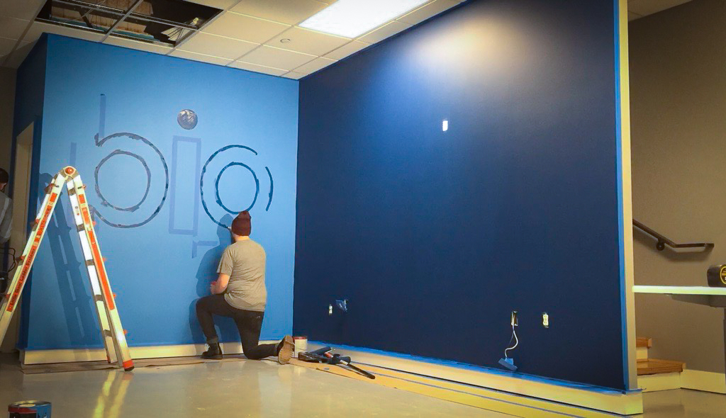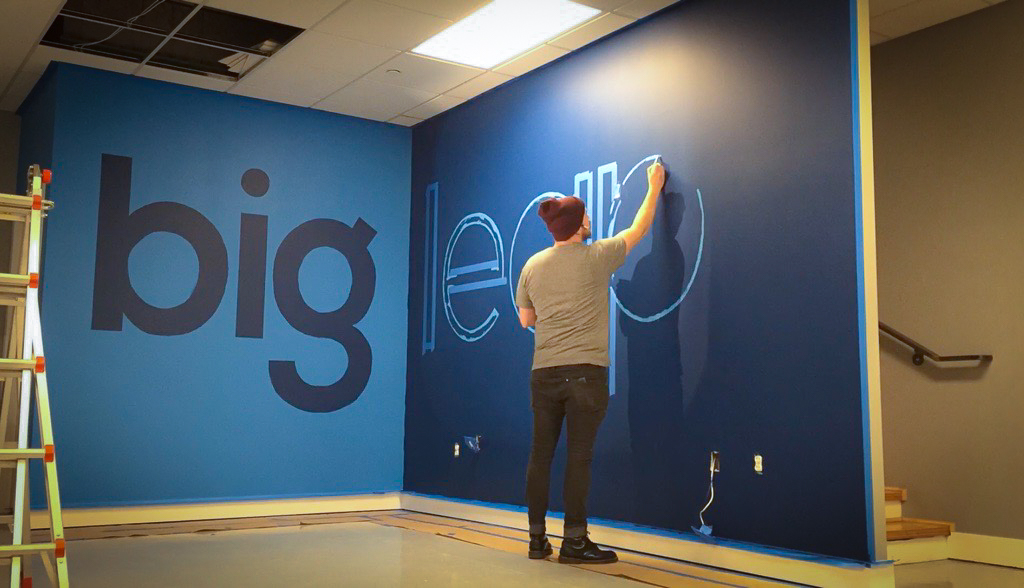 As part of a major corporate office renovation for BIG LEAP, a leading marketing company in Utah, I was commissioned to hand-paint their logo as a focal point within their redesigned space. Positioned at the junction of two intersecting walls, the mural was strategically placed to serve as the backdrop for content creation, including video clips, interviews, and marketing visuals. The bold, hand-painted execution brought a level of authenticity and craftsmanship that aligned with their brand’s identity, ensuring a strong and engaging presence in their media. This project not only enhanced their office aesthetic but also provided a dynamic stage for their storytelling and digital outreach.
