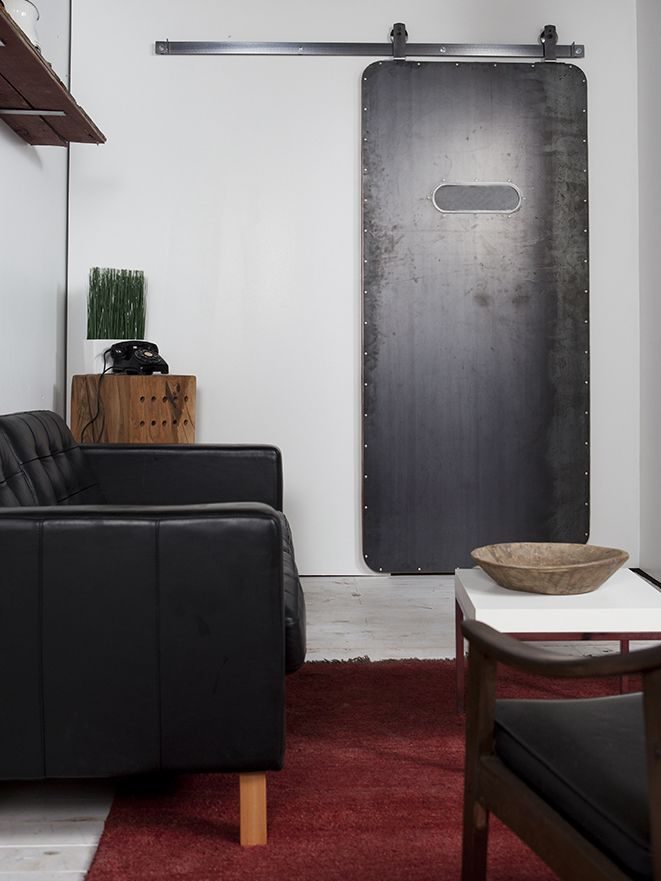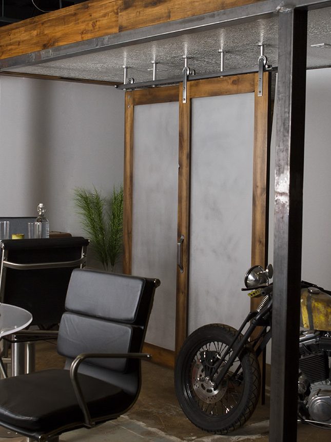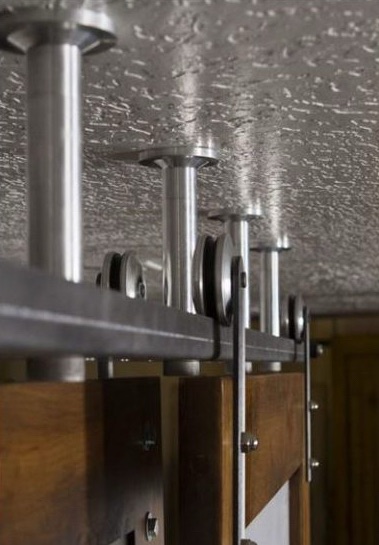 Addressing a common architectural challenge, we designed a high-end solution for spaces lacking header clearance for traditional sliding door tracks. The ceiling mount hardware was crafted from modular, aircraft-grade aluminum, milled and turned with precision to ensure durability and an elegant finish. This design provided a sleek, functional option for mounting sliding doors in challenging spaces, reinforcing Rustica’s commitment to innovative solutions.